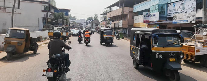 Um 12:00 Uhr starten wir zu einer 45 km Runde um Varkala. Wir gewöhnen uns an den indischen Verkehr. An einem Tempel machen wir eine kurze Pause.