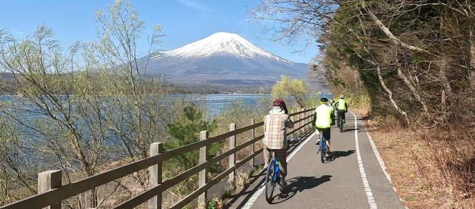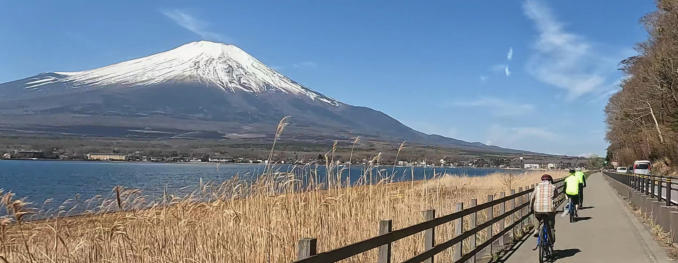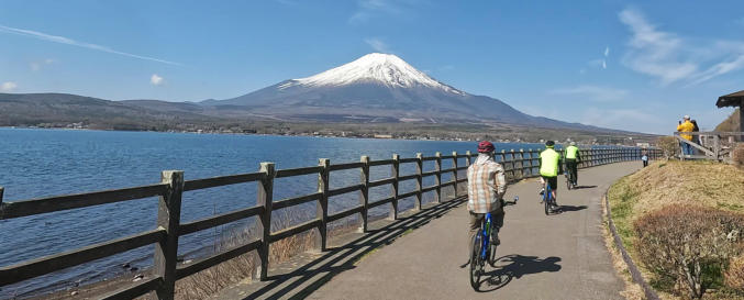 Heute fahren wir entlang dem Lake Yamanaka. Auf der linken Seite wacht majestätisch der Fuji über uns. In Kofu verlassen wir unsere E-Bikes und fahren mit dem Zug nach Matsumoto.