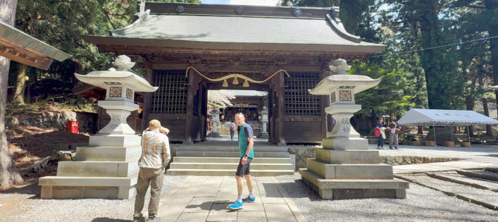 Nachtrag: Helmut gestern auf dem Fahrrad Nachdem heute Morgen zwei Busse abgefahren sind, hatten wir das Frühstücksbuffet für uns alleine Die heutige geplante Tour. Künstlerisch von Marko aufbereitet. Der Beweis: Helmut am Fuji Der Uferweg eröffnet uns herrliche Ausblick auf den Fuji Marko und Helmut gestern unterwegs Wir halten am beeindruckenden Asama Schrein Wir haben Kofu erreicht und fahren mit dem Zug weiter. Gruppenfoto am Yamananka See mit Fuji
