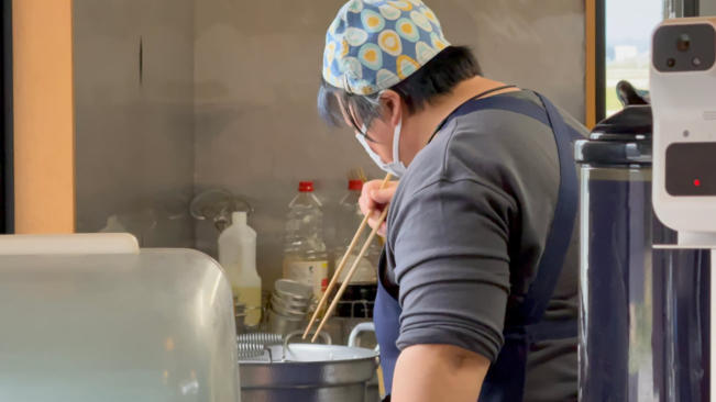 Besuch der japanischen Holzburg Blick von der obersten Etage der Burg Matsumoto-jo Matsumoto-jo bei Nacht (gestern Abend ) Kleine japanische Grabstätte am Wegesrand Die Wasabifarm Hier wächst Wasabi Pflichtübung: Helmut genießt Wasabi Eis Hotaka-Jinja Schrein Die japanische Köchin bereitet unser Essen zu Mit den Stäbchen zu essen gelingt mir immer besser Die letzten 20 km werden im Regen abgestrampelt