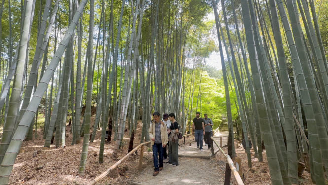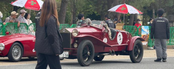 Yasaka Schrein Bambuswald Gion Die Touristen lieben es in traditioneller, japanischer Kleidung, die Stadt zu erkunden Zufällig erblickten wir den Zieleinlauf einer Veteranen Rallye Sandra und ich besuchten eine Geisha Vorführung