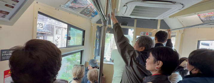 Heute Morgen verlassen wir Tokio mit dem Zug. Wir bewegen uns auf Japans höchsten Berg zu, dem Fuji. Wir steigen erst in eine Standseilbahn und dann in eine klassische Seilbahn um. Wir übernehmen die E-Bikes, und es geht über 50 km zu unserem Ziel dem Yamanaka See.